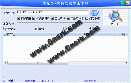 流星剑杀毒 V1.0 简体中文绿色免费版 流星剑免费工具,它具有单机版杀毒的所有功能,而且它是绿色的不与任何杀毒软件冲突。本软件下载后即是当天最新版本。使用流星剑用来辅助杀毒是不二之选,不像其他的杀毒软件免费版不能够杀毒,此款软件是可以查毒+杀毒的,而且病毒库的更新频率是和零售版一样的