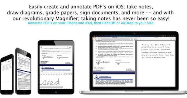 4、PDF创建,编辑和查看(在iOS上,批注的PDF与自由手写,笔记,纸张等级,等等 - 在iCloud中较大的PDF文件,如大型的电子书,不推荐)。