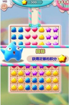 5.进入游戏界面上方显示为关卡任务分数,玩家需要消除星星来完成该关卡分数来挑战关卡,而界面右上方显示为完成该关卡任务所需要的步骤!