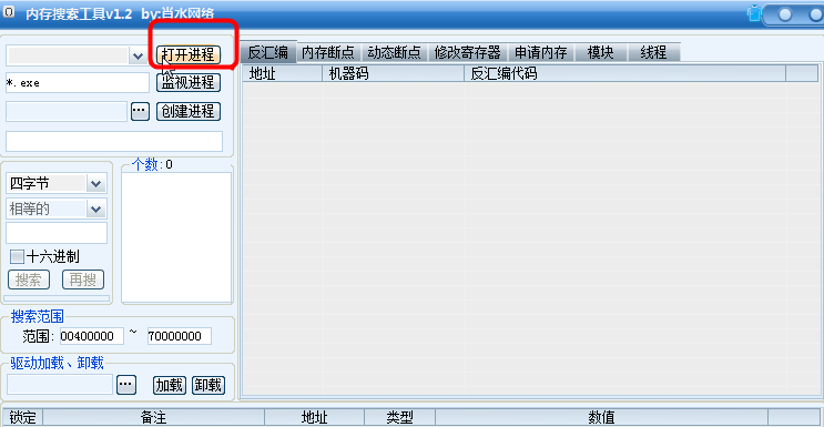肖水网络内存搜索工具 1.2 绿色版 通用内存搜索工具是一款简单实用的电脑进程和软件内存搜索工具,由肖水网络制作完成,它的内存搜索速度非常快,搜索效率高,是一款非常好用的内存搜索工具。它还拥有独特的十六进制编辑功能,帮你快速进行内存搜索,为你节省时间提高效率,是一款强大的内存搜索工具!