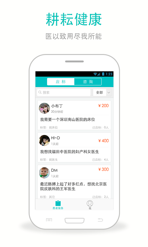 医护端--耕耘健康、劳有所得。回答患者的在线咨询,解决患者的就医难题,为患者提供医疗解决办法,若您的方案中标就可以获得相应的赏金。