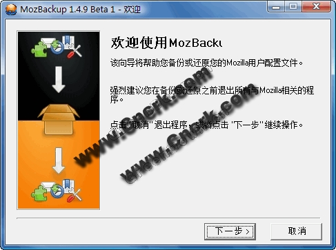 MozBackup V1.4.9 Final 汉化绿色免费版 FireFox配置文件又崩溃了...我的插件设置,我的RSS订阅全都不见了...怎么办?MozBackup备份软件可以轻松将Mozilla系列软件的配置信息保存下来,以备不时之需.最新版本加入了对2.0 Beta2的支持