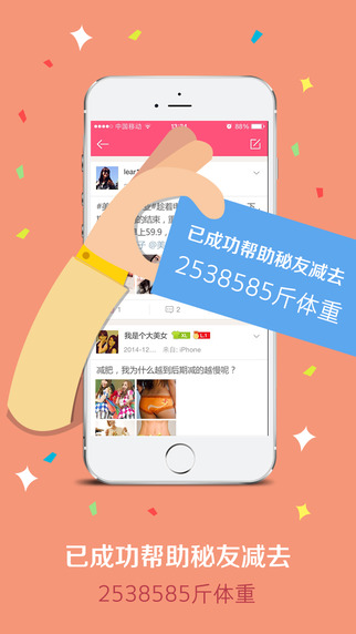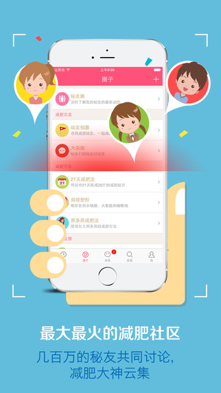 在减肥小秘书中你可以通过秘友圈和减肥圈找到减肥战友、解决减肥难题、膜拜减肥达人、成为粉丝众多的减肥大V不再是梦想。