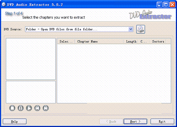 使用时先选择好视频来源(DVD-Video Source),在按照Next向导操作即可,DVD Audio Extractor拥有简单易用的界面、超快的提取速度、丰富的音频格式支持、多声道的能力,重采样为任意采样率、音频预览等等。它能满足你提取DVD音频的所有需求,这样您就可以在MP3播放器、PC机播放,或刻录为CD或进行任何其他操作。