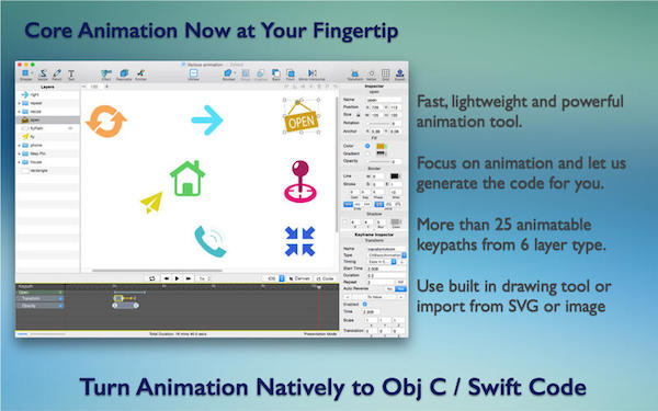 大大节省时间。创建绘图和动画,并实时获取目标 C 或 Swift 代码。-创建矢量绘图使用提供工具或使用现有的资产,从 SVG 或图像。