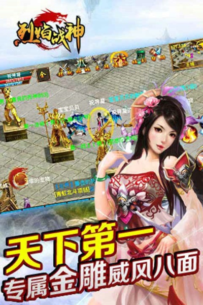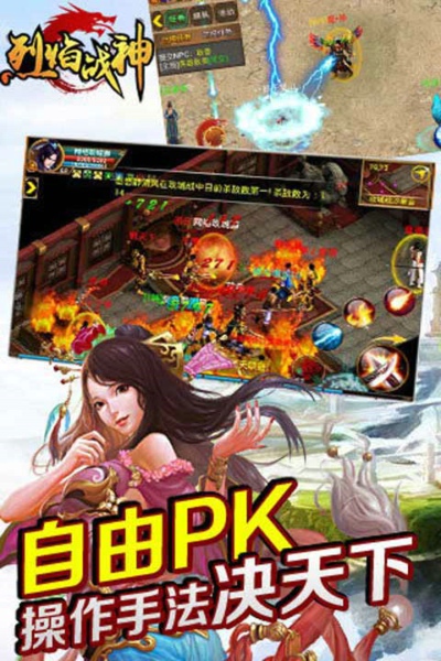 烈焰战神手游是一款注重PK并传承了战、法、道,打宝,攻城经典游戏模式的ARPG手机网游巨作,游戏将东方奇幻风格画风与符合东方审美风格的拟真角色设计,完美结合在一起,诠释了东方奇幻的最高意境。超绚的翅膀和极其丰富的时装设置,让玩家造型丰富多变,欲罢不能!游戏画面精致,玩家将与场景进行互动,为大家带来全新的动态游戏体验。