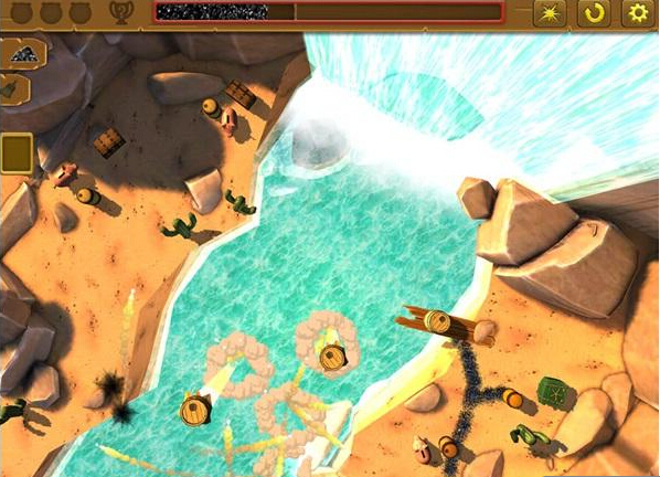 火药游戏是从从罗宾汉的故事中获取灵感,设计了125个简单而又独特的谜题。玩家主要扮演的 Incendio 是一个类似于罗宾汉的英雄,将与反派人物 Grimshaw 斗智斗勇,夺回小镇居民们被掠夺走的财物。而在关卡中,Incendio 需要利用火药、加特林炮、燃烧的货车等道具摧毁装着财物的储物箱。另外,游戏中还拥有包括计时赛,复活节彩蛋等更多精彩内容,不过最吸引玩家的无疑还是一箱箱被炸飞的钱吧。