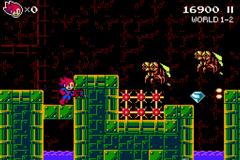 进入游戏之后就发现本作的复古像素风画面比红白机时代的许多游戏画面不如,让人实在有些无法欣赏,人物的造型设计颇有几分洛克人的味道,甚至连举枪的姿势都很像。而外星怪物的巢穴颇有魂斗罗的感觉,神秘的太空巢穴、各种可怕的星际怪物频繁的出现在游戏场景中,一下子又令人回到儿时那个射击闯关游戏横行的时代,游戏音乐除了低音轨的射击枪声显得有点复古之外,再也没有其他特别突出之处了。作为一款横版动作射击游戏,游戏的操作基本非常简单容易上手,开场后主角会自动向前奔跑,点击左边的屏幕为跳跃,可以对障碍物、陷阱甚至对人进行躲避,右键为射击,可以对面前的敌人造成伤害,不过想要对敌人造成大量的伤害,必须在游戏过程中不断通过关卡场景中各处放置的武器包来提升了,因为游戏中是没有商店系统,能否获得好的武器就完全看玩家的技术操作水平了。同时射击的角度需要进行调整,因此灵活性和准确性实在是一般,另外值得吐槽的时候,在跳跃的过程中不能同时进行射击,可以说是操作中最弱的一个环节。
