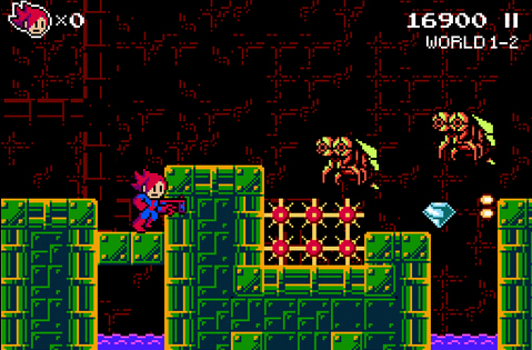 游戏中主要一关卡的形式推进,玩家的目的就是手机关卡中的三颗钻石然后安全通关即可,每一关其实都很简短,如果游戏顺利的话,一般在30秒内就可以完成,不过由于操作系太过单一,使得过关的难度增加,除了各式各样的敌人之外,还有各种危险机关,只要与任何一种危险的物体接触就会直接导致失败又从头来过。尤其在在即将的过关的时候是最困难的,大量的机关陷阱紧跟敌人不断的出现,糟糕的操作又总会让人顾此失彼,应接不暇,想要毫发无损的通关也不是一件容易的事情。