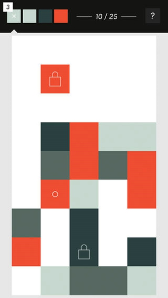 游戏规则就翻牌子一样,只能横竖着一格一格的将牌子铺开,知道有三个或三个以上相同颜色的方块在一起才能消除。最终目标就是不把自己围困起来并且完成游戏开始时给出的目标。起初只会有两种颜色,往后就会有更多的颜色块来“搅局”。所以每一步都需要玩家需要仔细考虑,你走的每一步都有可能决定胜负,万一走错很轻易的被锁死去路。