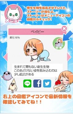 进入游戏,点击屏幕进入游戏,游戏加入了精彩的剧情!她是寄生虫进化而来的新生命体「寄生存在」。她说愿意保护我,条件是要从我体内吸取养分,还说要假装是我女朋友!游戏中点击屏幕剧情即可快速跳过!虽然她长得很可爱,可是要我把寄生虫当女朋友,这未免太离谱了吧!我原本平静的生活,难道就要这样被她搞得乱七八糟?游戏中你是身体出行各种食物,点击屏幕中的妹子,然后点击它们即可进行吞食!游戏加入了妹子进化条,玩家你可以点击选择来不断的让妹子进化养成!而游戏中拥有不同的妹子造型可以选择哦!游戏中多样化的结局,这个由玩家每次和妹子对话之后的选择来决定!幸福结局还是悲伤结局,由你而定。