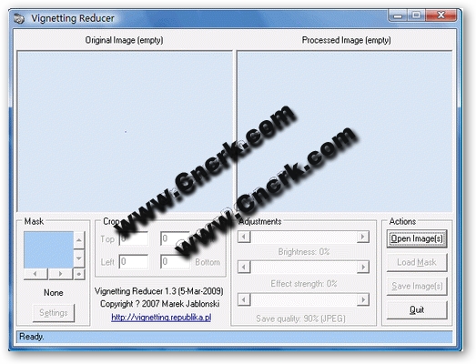 Vignetting Reducer 可以帮助你从照片清除或者减轻通常由于镜头的机械属性,错误地排列滤镜或者遮罩附加装置而造成的虚光效果。该软件使用一个采用了使用相同镜头,滤镜和遮罩导致原始虚光效果的正确背景的第二张图片覆盖的处理过程。然后你可以载入第二张图像作为一个遮罩并且进一步挑战效果和亮度直到虚光效果被减轻或者清除。使用该软件可以获得非常好的效果,但是会覆盖掉一些效果