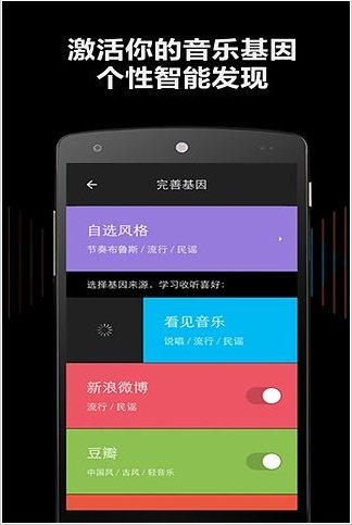 - 颠覆性的音乐发现方式,定制你的音乐基因- 学习你音乐口味的微妙改变,不用费力搜索,轻松拥有符合口味的独立音乐电台