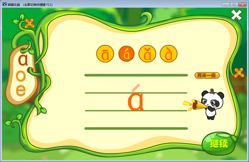 熊猫拼音-幼儿学拼音软件是熊猫乐园专门为2-9岁的小朋友准备的儿童学拼音游戏软件从儿童喜爱卡通动画的兴趣入手,带宝宝进入神秘刺激的拼音寻宝世界,在看动画,玩游戏的过程中不知不觉地学会拼音