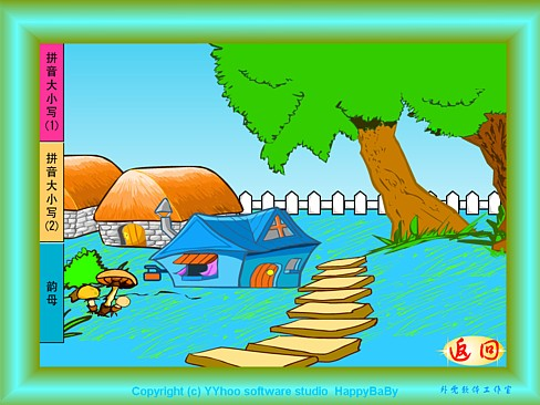 1.快乐宝宝学拼音HappyBaBy是一款目前最全面,最完整的汉语拼音入门学习的工具,结合儿童喜爱卡通动画的心理特点,2.采用卡通动画的方式,循序渐进,有浅入深,图文并茂,纯正的发音,详细的讲解,并配有精彩的FLASH动画,结合听、说、读、写等训练,寓教于乐。