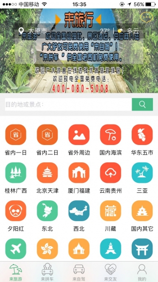 来旅行,旨在为每一位用户提供便捷的生活服务,能够为手机端客户提供旅游产品预订服务,旅游出行拼车、查询周边旅游景点、购买出行保险、聊天交友等功能,同时实现了LBS查询服务和手机支付。全面满足并提升了用户对日常生活和旅游的出行体验。