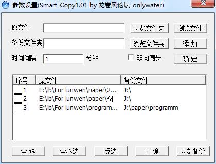 SmartCopy自动备份软件可以帮助你定时备份文件/文件夹到指定文件夹内,当然你也可以选择单向或双向备份,这款SmartCopy会自动比较文件日期,当源文件日期比目标文件日期新则进行备份。需要注意的是软件中的删除功能只是删除备份列表,并不是删除源文件。