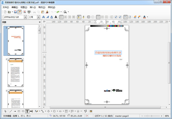 D-修改、删除或者插入页面:用户可以在任何PDF文件页面当中,随意修改、删除或者插入页面,实现对现有PDF文件内容的重新编辑。
