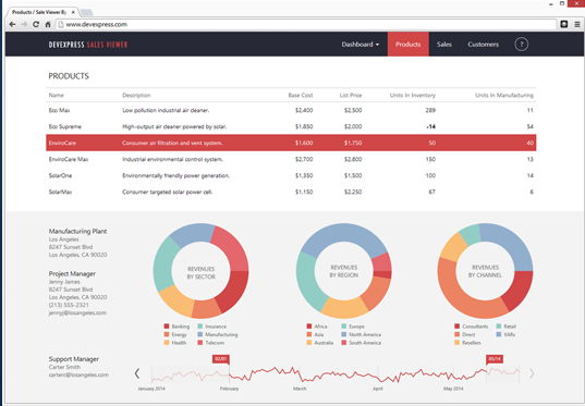 移动设备开发简化:创建高反应度的应用,满足了不断变化的企业以及BYOD世界的需求。使用HTML、CSS3和JavaScript,从而实现了外观,感觉和行为如原生应用程序一样的业务解决方案,不需要学习其他更多的语言或框架。美丽而又身临其境的数据可视化:DevExtreme为智能手机和平板电脑封装了易于使用的HTMLJavaScript应用程序,包含超过30种触摸优化的本地UI小工具,可用于任何应用程序的单个页面。