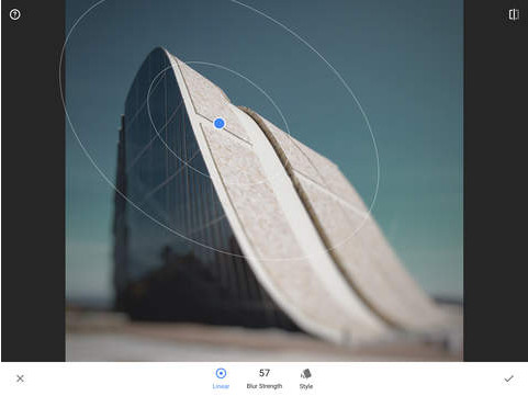 工具类主打图像的基础编辑和细节的调整,其中不乏很有特色的功能。比如说:「画笔」可以调节局部的曝光、色温等项目;「污点修复」可以一定程度上做到Photoshop中同名工具的效果。最高能的是「变形」功能,矫正图片角度时会造成边角缺失,它可以自动选取周围的图像,对缺失部分进行填补,如果是细节要求不高的图,效果非常不错。滤镜类也非常有特色,保留了戏剧、复古等「一键大变身」的滤镜,还加入了更加丰富的镜头模糊模板,以及魅力光晕、粗粒胶片等功能。