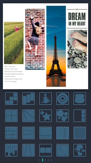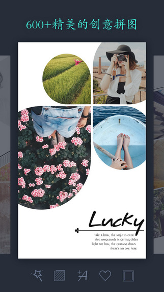 - 200多种的创意拼接模版,并持续添加中- 支持添加文字、装饰和边框