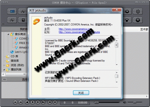 jetAudio V7.1.9 Build 4030 Plus VX 多国语言官方安装版 韩国COWON公司推出的带有声音增强效果的集成多媒体播放器,其强大的功能,豪华的外形,方便的操作等各种优势,使其堪称目前多媒体播放器中的极品。独立的声音/视频组件,这些组件是针对数字信号处理器,音频CD播放器,数字音频(MP3,RA等等),MIDI(MID,MOD等等),以及数字视频(AVI,MPG,MOV等等),还有一个混音器及一个遥控器。