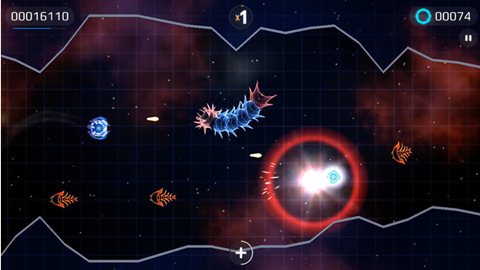 在游戏当中,玩家将会面对无穷无尽的外星人攻势,而整个游戏的操控系统和《Flappy Bird》颇有几分相似。玩家只需要简简单单地点击屏幕并持续一小会儿,即可让自己的飞船向该位置移动。随后玩家可以松开自己的手指,飞船就会稳稳固定在该位置上。整个飞船的射击完全是全自动的,玩家所要做的工作只是让引导飞船的位置而已。随着游戏的进行,对手也会愈加强大。所以玩家需要在战斗中注意抓取能量来改善自己的火力成都,或是射击速度。土豪玩家也可以花钱来完成额外的升级,或是增加飞船生命力。当然如若玩家成功打败敌人后,同样能够得到力量增强道具。相比于经典的像素射击游戏《小蜜蜂》,这款游戏无论从画面质量还是可玩性上面都上升了一个台阶。除了迎面袭来的敌人以外,玩家还不得不想方设法避开从后面袭来的敌人。同时游戏里也有一些讨厌的病毒。玩家所需要做的就是避开它们,或是想方设法驯服它们,为己所用。