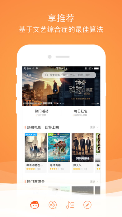作为电影app,格瓦拉电影网底层数据不外乎是电影院和电影的资料。故格瓦拉的主界面只放了“热映电影和附近推荐影院”两个功能入口。无论是特意想看某部电影的用户,还是单纯想找部电影消磨时间的用户,都可以找到最合适自己需求的功能入口。格瓦拉电影在数据方面,则是沿用主界面的纵向陈列方式,顶部下滑会进入封面模式,效果略炫。而电影详情最下面则是用户评论,最犀利、最内涵的“用户哇啦”都会被置顶,方便其他用户浏览及评论。
