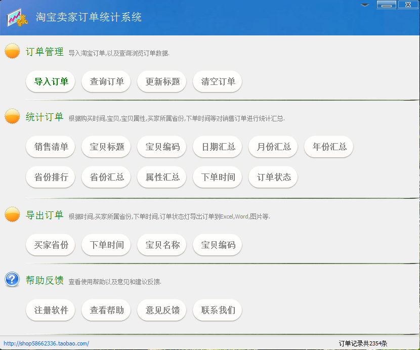 虾米淘宝卖家订单统计系统 v2.2更新:版本修复某些情况下无法导入宝贝编码的问题。