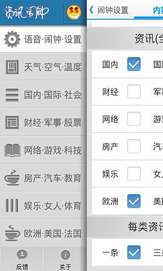 起床资讯闹钟旨在每天的第一时间将最新最丰富的新闻资讯,以闹钟提醒的模式,伴随着优美的旋律将资讯送入您的耳中,无论是时政要闻还是文体娱乐,统统都不会错过。【软件特点】