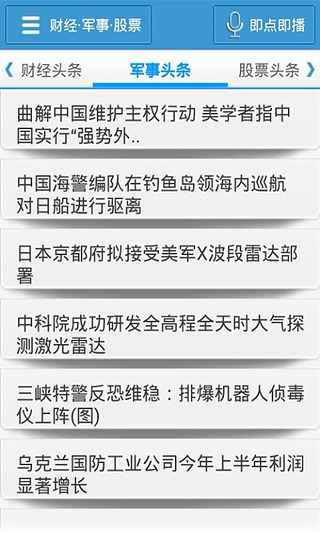 1.权威客观的资讯内容,包括:新闻,娱乐,财经,体育等多个频道。2.贴切的广播语音服务。