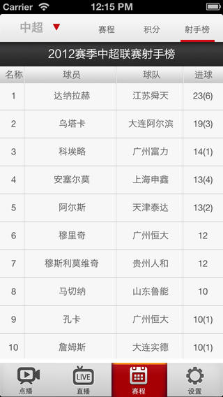 3、赛程:中超、亚冠、足协杯赛程一目了然,随心切换,比分实时更新,关联直播点播,还有直播提醒让您不错过任何一场比赛。