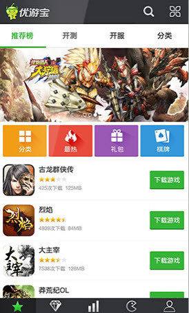 起点提供优游宝下载,这是一款国内知名的手游网站应用。在这里汇聚了市面上最热门的手游,各种类型都有,还有全新手游开测和最热火手游开服第一消息以及游戏资讯,都可一手掌握。