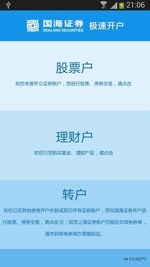 国海证券开户软件适用国海证券极速开户APP客户无需临柜,只需准备好身份证、银行卡即可完成开户手续,享受国海证券专业的投资理财服务。国海证券极速开户,为您开启财富之门。