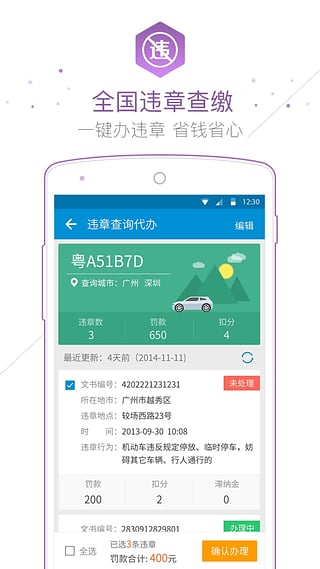 4. 违章查缴 - 免费查违章,手机轻松缴,支付宝支付,从此告别去车管所交警队排队办理