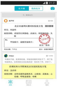 2,处方解读:了解处方上的疾病、药品、医院、医生详细信息。