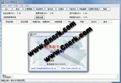 Glean股票助手 V1.4 简体中文绿色特别版 本程序有三个基本功能:管理散户的股票交易和资金帐务;查阅个股的详尽信息;和监视股票行情小窗口。