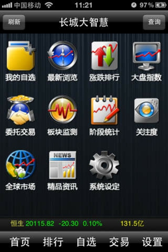 长城证券手机版软件是长城证券基于移动互联网技术,将证券行情、交易、资讯等服务资源完整融合的软件,根据客户的手机操作习惯、客户熟悉的网上交易习惯设计买卖、帐户查询、业务办理等操作流程,长城证券手机版软件让客户轻松完成投资交易。【软件特点】