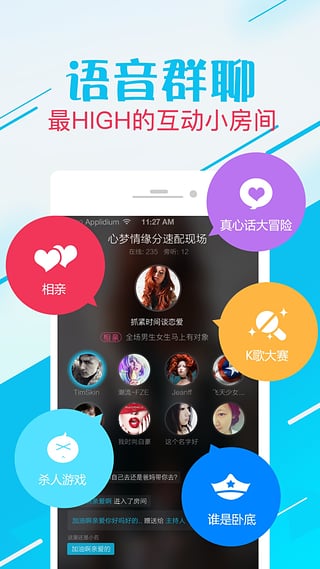 1.想爱就爱:进入房间,免费参加,选心动对象,说出你的交友宣言,就这么简单