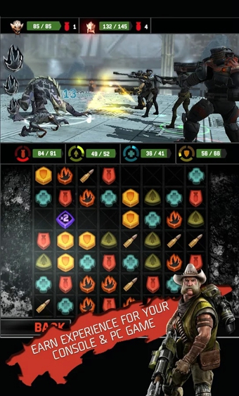 《进化:猎人的远征(Evolve: Hunters Quest)》 是一款富有挑战性的消除游戏。其设计基於获得2014年E3最佳游戏奖的主机游戏Evolve。玩家通过匹配三个同色图形积攒能量条,消耗能量发动猎人的特殊技能攻击敌人。战斗胜利后获取的技能点可以用来升级玩家手游和主机游戏中的角色。探索Shear星球,寻找新的野生动物和怪兽,集齐Bestiary中奇异的野生动物将能赢得主机游戏中各式头像徽章。默认头像太单调?那么不要错过Bestiary。玩家还可以通过手游Game Changer模式重播自己主机多人游戏的鸟瞰视频,对游戏有更宏观的理解,是一个学习提升游戏技术的好途径。Evolve: Hunter's Quest让你随时随地继续你的Evolve旅程!