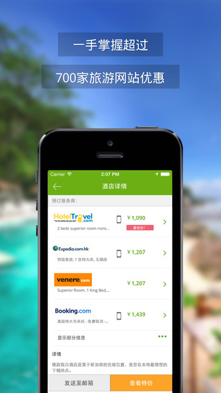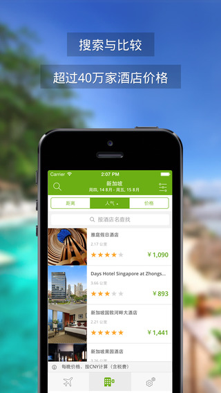 在一个应用内直接搜索机票和酒店一站式比较上百家网站的搜索结果和价格