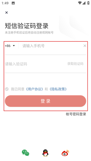 4、于登录页面,填入信息,同意协议后点击登录,即可完成账号注册。