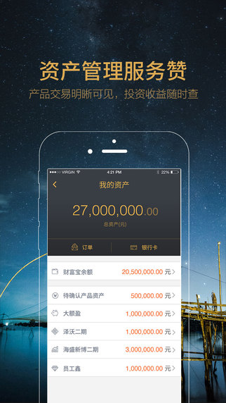 1.五重安全机制保障信息和资金安全,即直连公安系统实名认证,手势密码/超时退出,对接银行系统验证银行卡信息,交易密码和银行预留信息验证安全性,资金“原卡进出”、保证资金闭环。2.聚集平安财富全国顶尖的投资经理和理财经理,为客户提供专业投资意见和完善的风险管理,为客户提供专业投资意见和产品咨询,并提供私密的投融资社交服务和富有前瞻性的财经资讯。