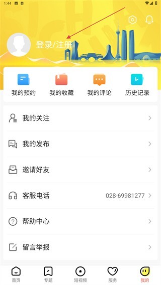 2. 进入个人中心界面,点击上方的登录/注册区域。