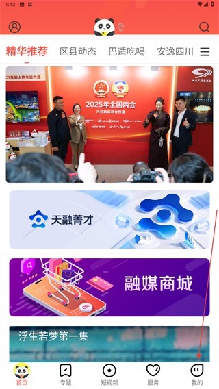 1. 打开熊猫视频,进入应用时点击右下角的“我的”图标。