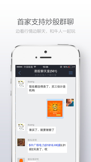 3、聊天互动:实时聊天,看高手晒实盘,跟牛人一起炒股!