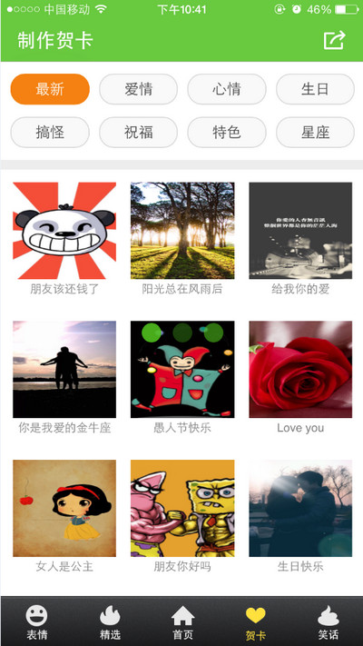 腾牛微助手App为微信网友们定制七大特色主题贺卡,爱情、心情、生日、搞怪、祝福、特色、星座七大题材,数百款个性化免费主题,搭配精心设计的背景音乐打造专属于自己的“私人定制”贺卡哦!