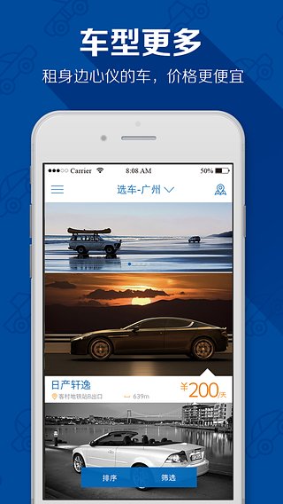 租车车型多样,任您选择密集布局,就近快捷租车