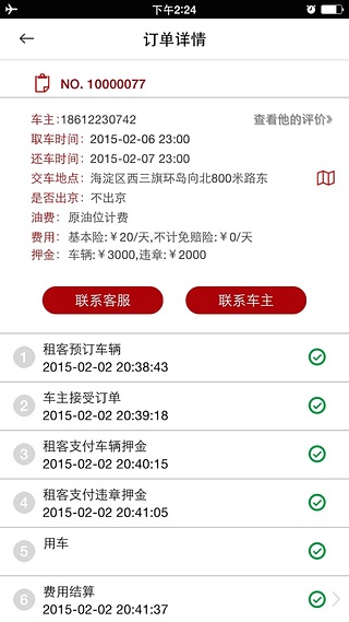 2.订单中实时查看预订车辆详情