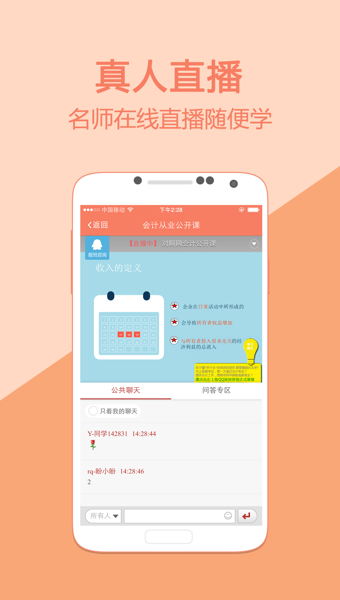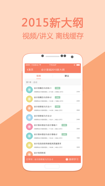 会计随身学是针对会计从业资格证考试的手机学习应用,适用于全国各地区,应用内包含最新会计从业资格证考试大纲的全套视频课程,题库,讲义,直播及学习论坛,其中视频,题库,讲义完整免费,能够帮您一次通过会计从业资格证考试!【更新日志】